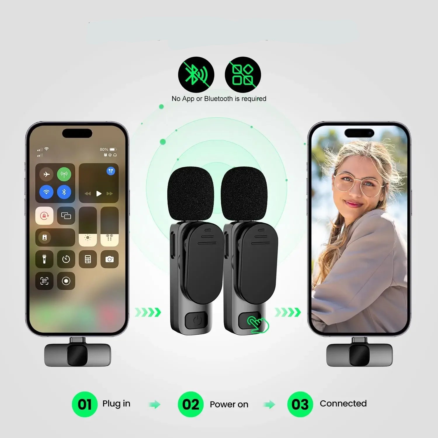 Microfone de lapela Basix para iPhone e microfones BasixWireless para telefones Android Grave sons diferentes a qualquer momento, pode ser usado para microfone do Youtube
